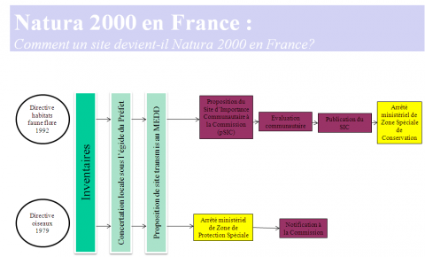 Comme pour toutes les directives européennes, les directives "Oiseaux" et "Habitats, Faune, Flore" ont fait l'objet d'une transcription dans le droit français.